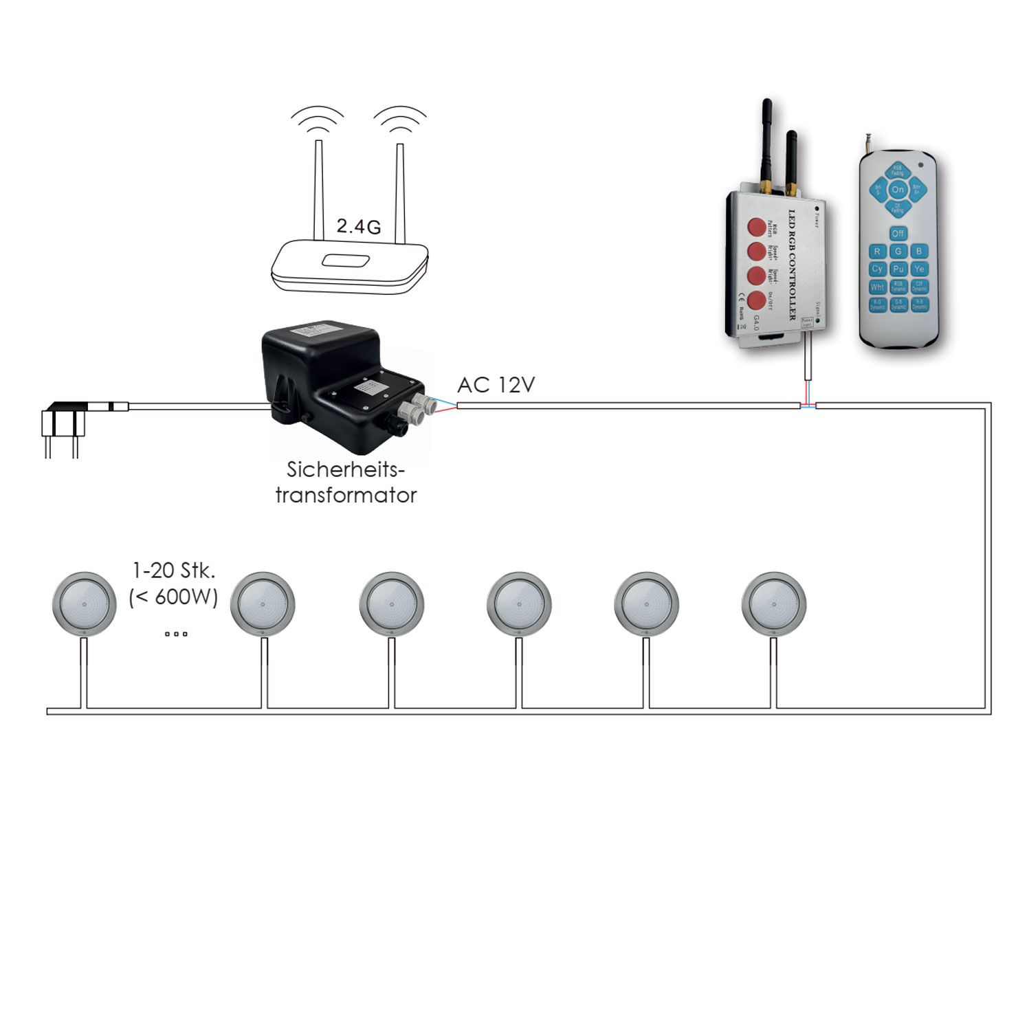 Hinweis: Dies ist ein Zubehörartikel. Das LED RGB Leuchtmittel und der Controller müssen separat erworben werden.