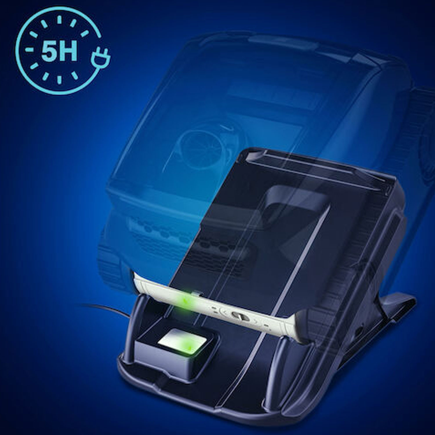 Der Freerider RF 5400 iQ macht Schluss mit Kabelsalat! Die leistungsstarke Lithium-Ionen-Batterie sorgt für einen kompletten Reinigungszyklus von 2 Stunden 30 Minuten und ist in nur 5 Stunden wieder voll aufgeladen. Über die iAqualink® App hast du jederzeit die Kontrolle: Du siehst den Akkustand, bekommst Benachrichtigungen zum Zyklusende und kannst Updates bequem aus der Ferne steuern. So genießt du maximale Flexibilität und Komfort bei der Poolreinigung.