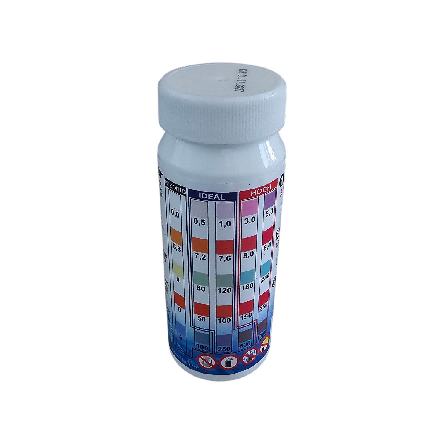 Pool-Teststreifen sind praktische Messstreifen, mit denen Du wichtige Wasserwerte in Deinem Pool oder Whirlpool schnell und einfach überprüfen kannst. Sie helfen Dir, die Wasserqualität zu kontrollieren und sicherzustellen, dass das Wasser hygienisch und gesund bleibt. Typische Messwerte sind Chlor, pH-Wert, Gesamtalkalität, Cyanursäure und Gesamthärte.