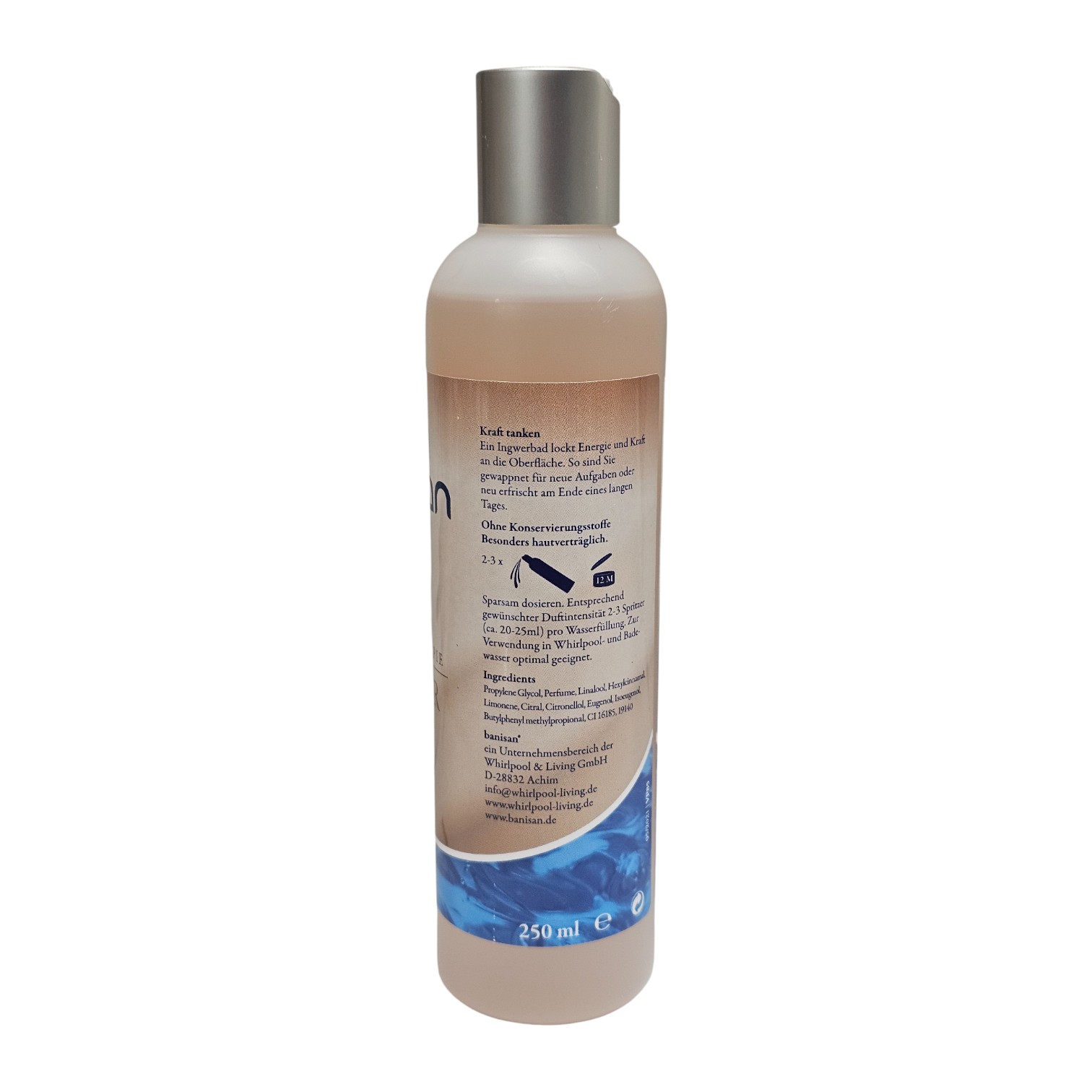 Tauche ein in neue Energie! Mit dem Banisan Badezusatz Ginger verwandelst du deinen Whirlpool in eine Oase der Frische. Das aromatische Ingwerbad sorgt für pure Vitalisierung, lässt Körper und Geist wieder aufleben und schenkt langanhaltende Erholung. Dank der nicht schäumenden Formel ist das Produkt besonders schonend zu deiner Whirlpool-Technik und garantiert ein entspanntes Badeerlebnis – ganz ohne Rückstände oder übermäßige Schaumbildung. Genieße pure Duftmomente und intensive Erholung, egal ob nach dem Sport, einem langen Arbeitstag oder einfach zwischendurch!
