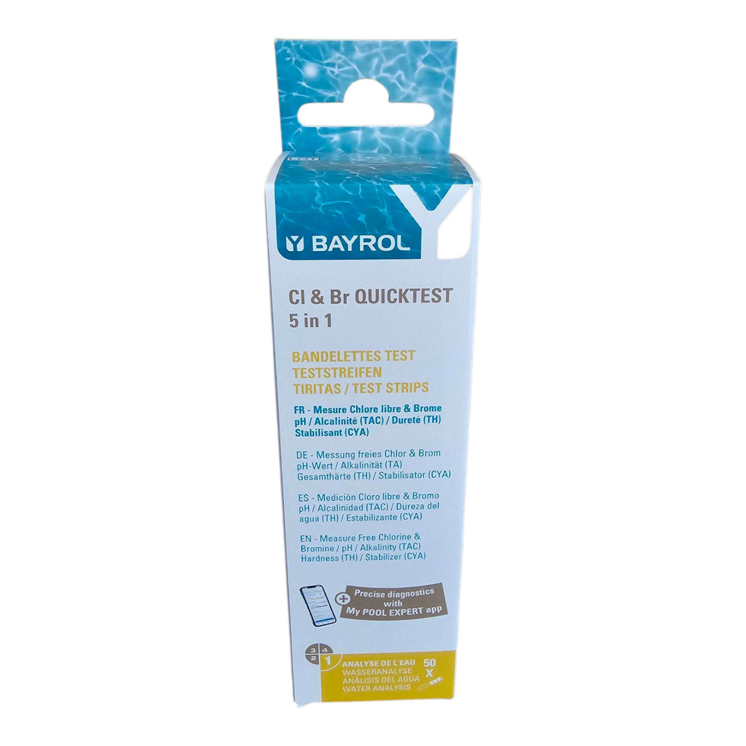 Der Bayrol Quicktest macht die Wasseranalyse in Deinem Pool zum Kinderspiel. Jeder Teststreifen verfügt über vier Messpads, die sich bei Kontakt mit Wasser verändern. So kannst Du die Werte einfach mit der abgedruckten Farbskala vergleichen und eventuelle Abweichungen schnell anpassen. Über die benutzerfreundliche Anleitung wird die Handhabung zum Erlebnis – ohne langes Hantieren mit chemischen Reagenzien oder Testtabletten.