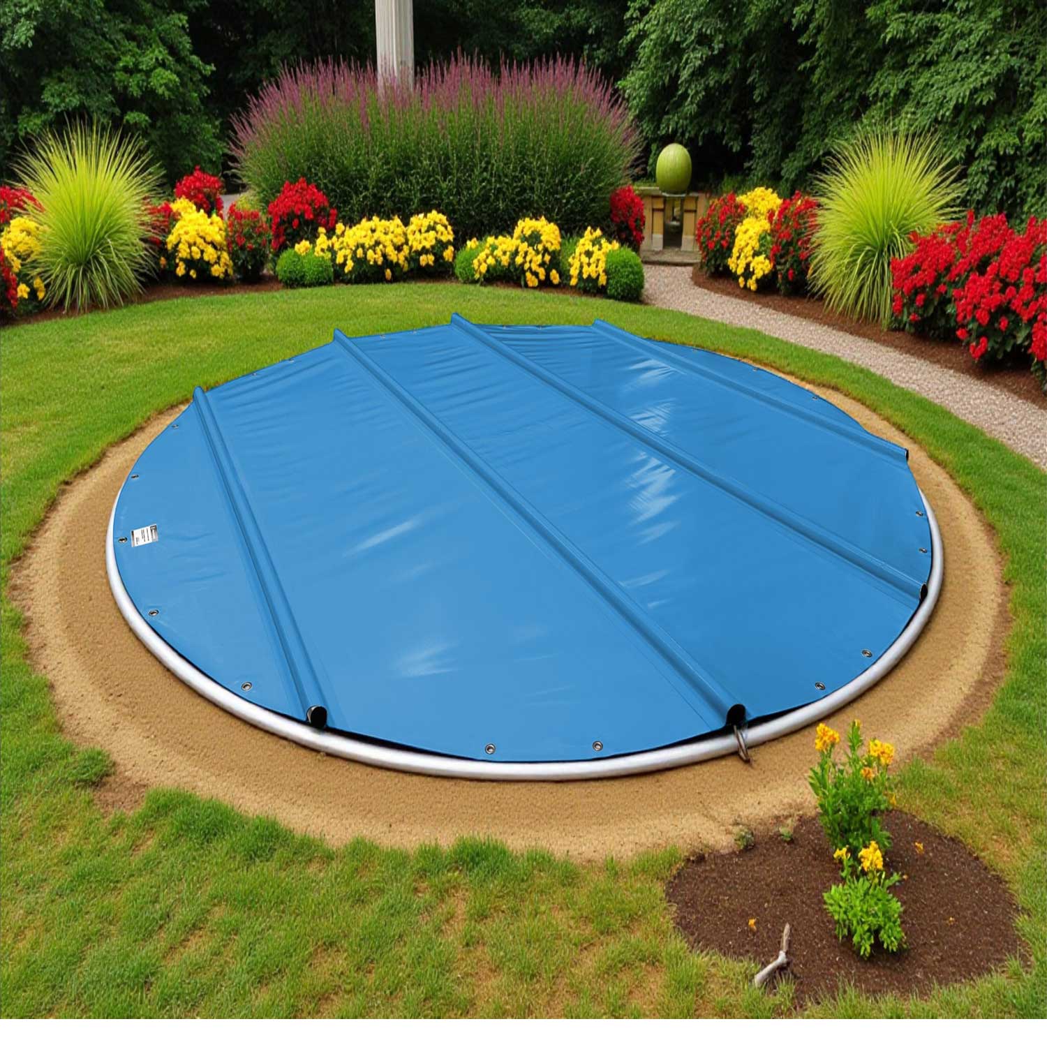 - Besonderheit: Die Plane wird ca. 40-50 cm größer als das Poolinnenmaß empfohlen, um optimale Passform und Randauflage (mindestens 20 cm) zu gewährleisten
