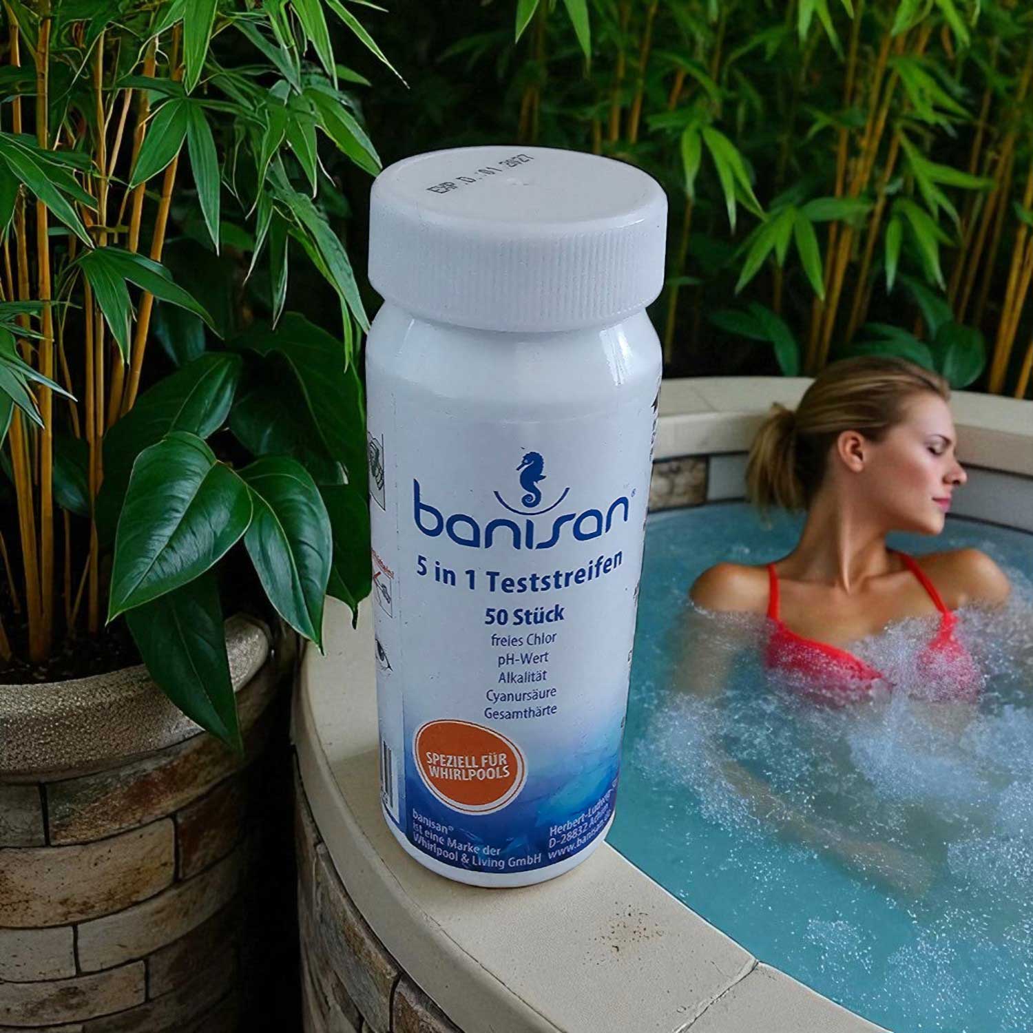 Jetzt die Banisan 5-in-1 Pool-Teststreifen bestellen und die Wasserqualität Deines Whirlpools mühelos im Griff behalten!
