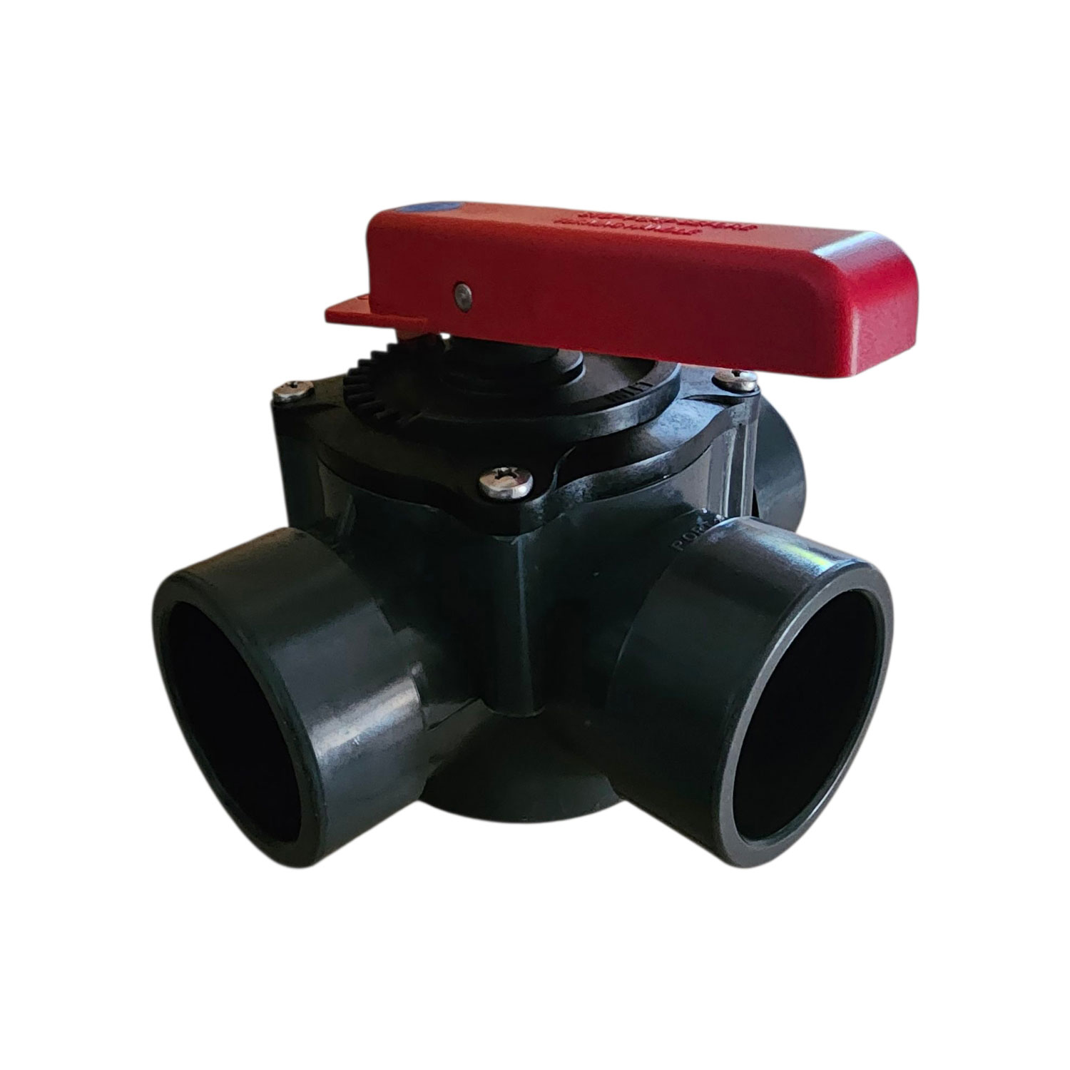 Mit seinem widerstandsfähigen PVC-U-Gehäuse und einer EPDM-Dichtung garantiert das Ventil eine exzellente Langlebigkeit sowie sichere Abdichtung auch bei längerem Einsatz. Die spezielle Konstruktion ermöglicht ein problemloses Umschalten zwischen den einzelnen Leitungswegen – der rote Handhebel bietet dabei höchsten Bedienkomfort.