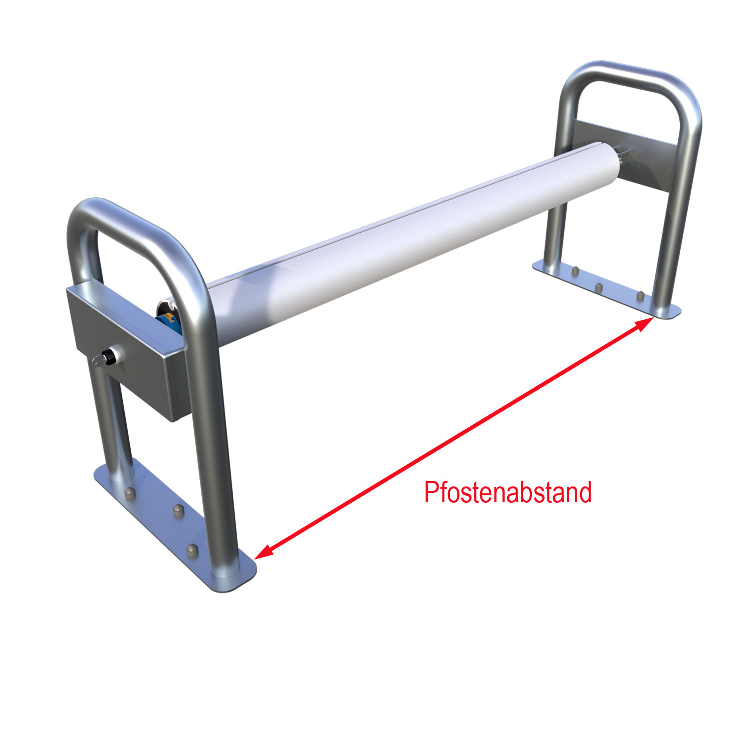 Die seitlichen Stützen kannst du wahlweise elektropoliert oder mit einer Pulverbeschichtung in deiner bevorzugten RAL-Farbe ausstatten lassen. Damit fügt sich die Aufrollvorrichtung nicht nur technisch, sondern auch optisch harmonisch in deine Poolumgebung ein – von schlichtem Edelstahl-Look bis hin zu farblich abgestimmten Akzenten.