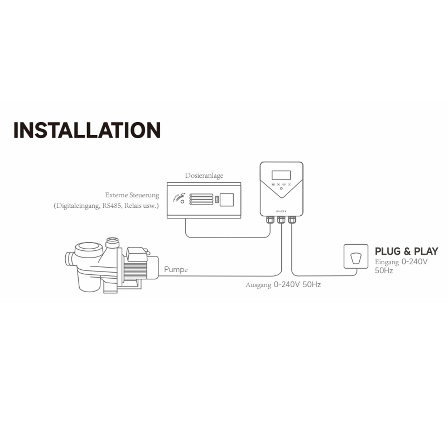 - Kompatibel mit 230‑V‑Wechselstrom‑Filterpumpen (nachrüstbar)
