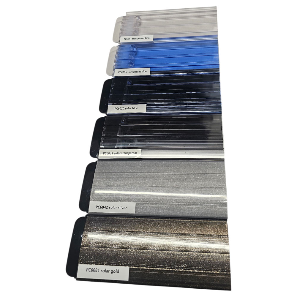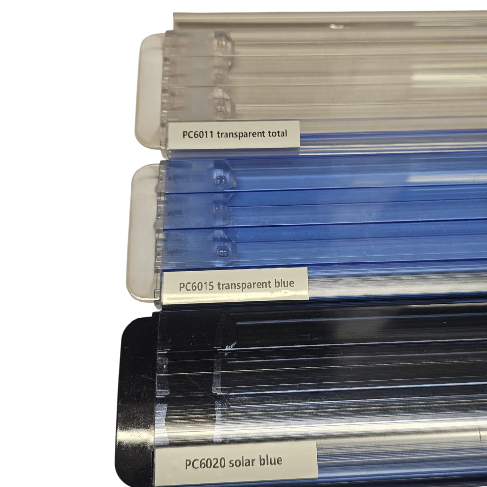 - Profiltyp: PC60 Polycarbonat-Lamellenprofil, dreifach extrudiert
