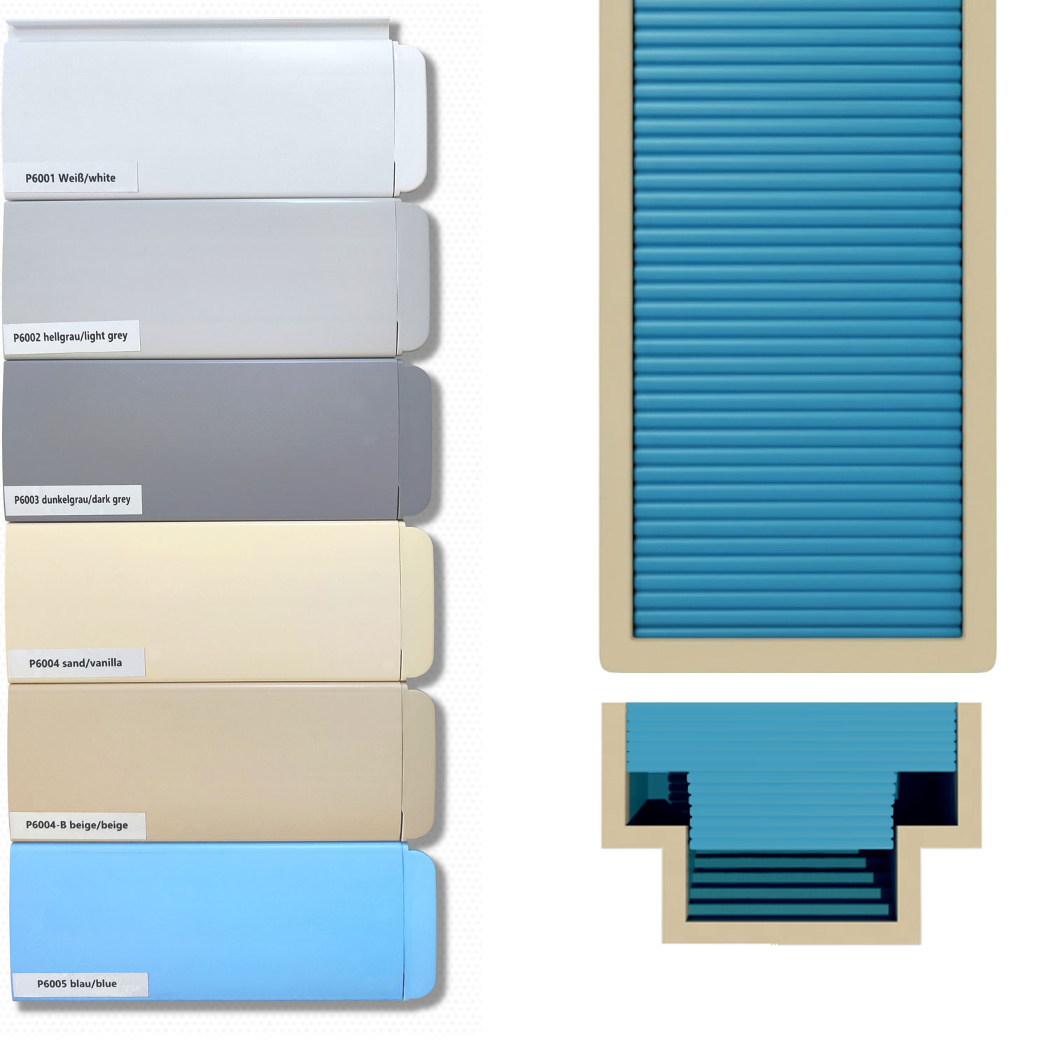 - Farblich passende Endkappen, an das Profil angepasst