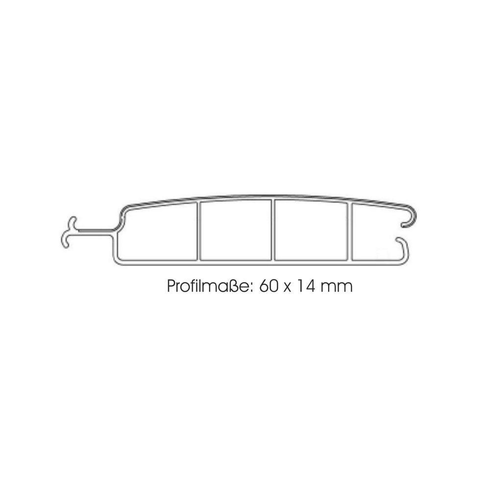 Das Profil besteht aus UV-stabilisiertem PVC in Dreikammer-Bauweise. Dadurch ist es langlebig, formstabil und für den dauerhaften Einsatz im Außenbereich geeignet.