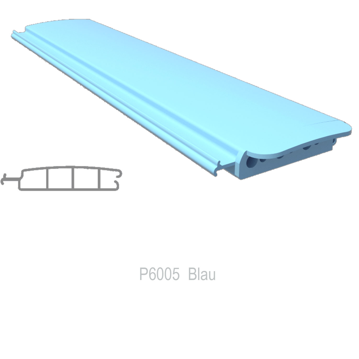 Die Endkappen der Lamellen sind farblich auf die gewählten Profilfarben abgestimmt. So entsteht ein harmonisches Gesamtbild ohne störende Kontraste. Du kannst zwischen Weiß, Hellgrau, Dunkelgrau, Vanille, Beige und Blau wählen und deine Poolabdeckung exakt an Beckenrand, Umgebung oder Terrassenoptik anpassen.
