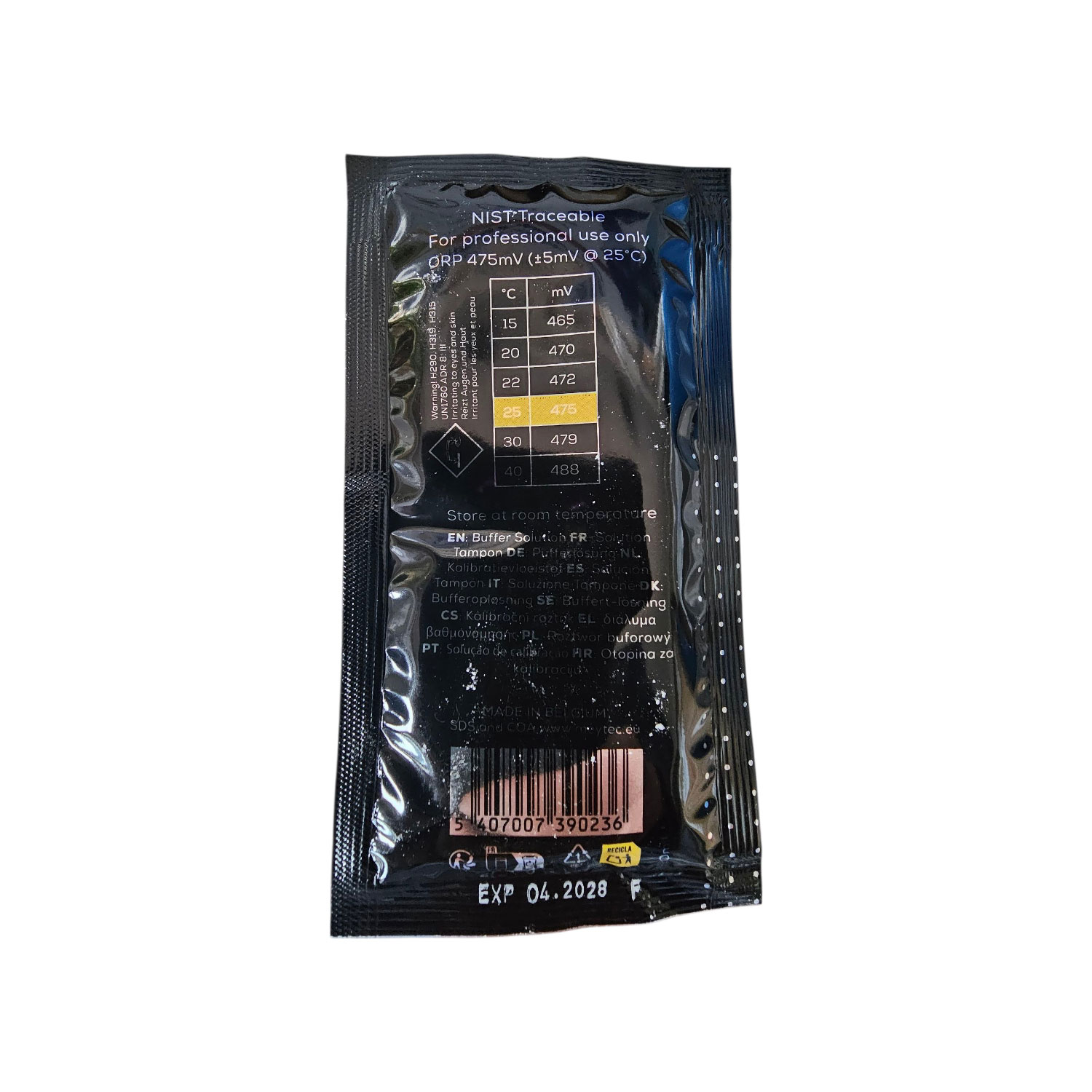 Die Meytec Pufferlösung 475mV gewährleistet eine schnelle und unkomplizierte Kalibrierung Ihrer ORP-Sensoren. Jeder Beutel enthält exakt 20 ml einer hochwertigen Kalibrierflüssigkeit, die speziell für eine einmalige Anwendung konzipiert wurde. Die innovative Beutelverpackung schützt die Lösung effektiv vor UV-Strahlung und dem Kontakt mit Luftsauerstoff. Dies garantiert eine maximale Stabilität und Haltbarkeit, sodass die Pufferlösung stets in optimalem Zustand für Ihre Kalibrierprozesse bereitsteht. Kalibrieren Sie Ihre Geräte direkt im Beutel und vermeiden Sie so Kontaminationen und Messfehler. Ideal für Labore, Wasseranalysen oder industrielle Anwendungen, wo genaue ORP-Werte unerlässlich sind.