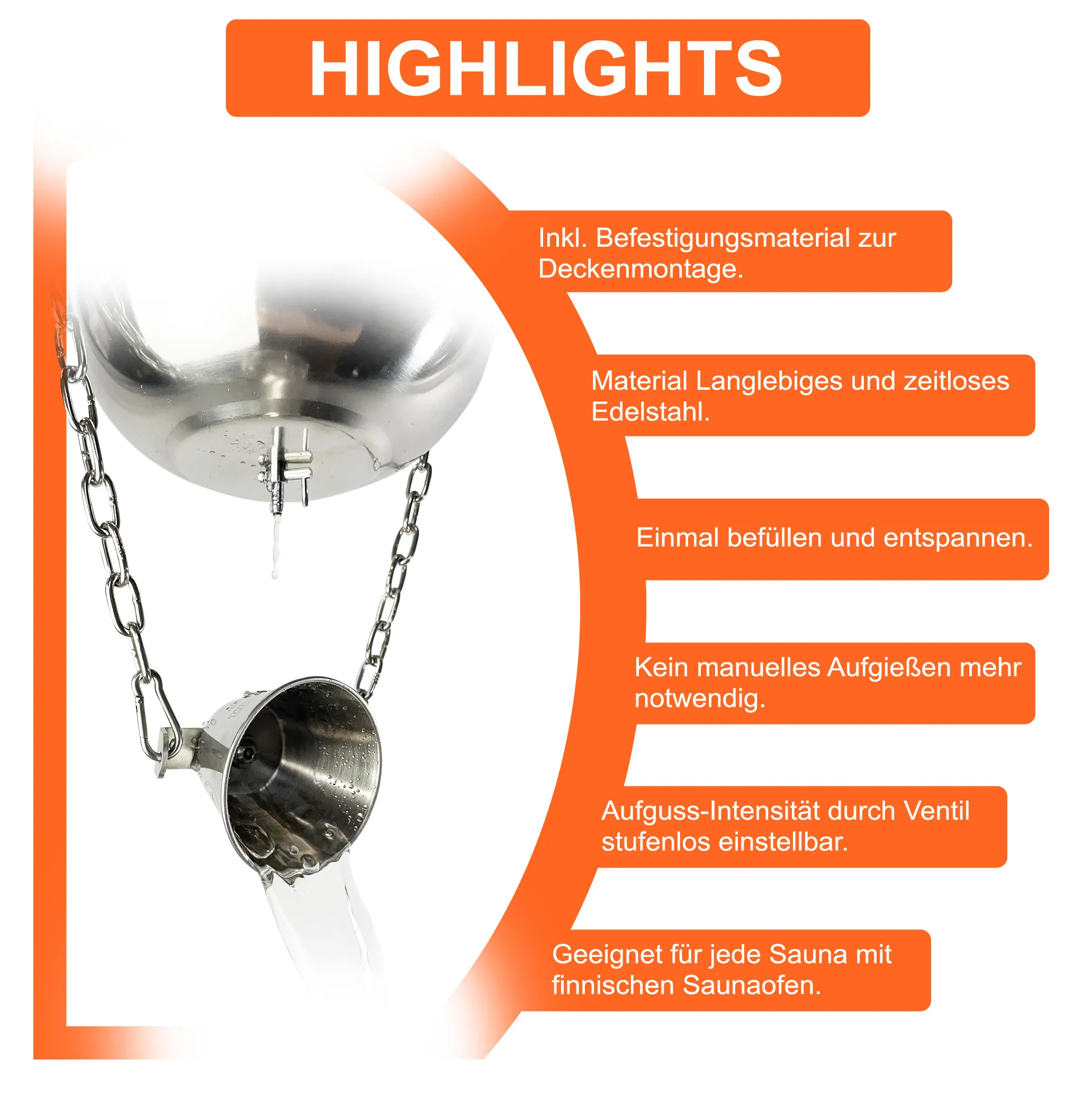 - Flexible Nutzung: Aufguss-Intervall und Wassermenge präzise einstellbar