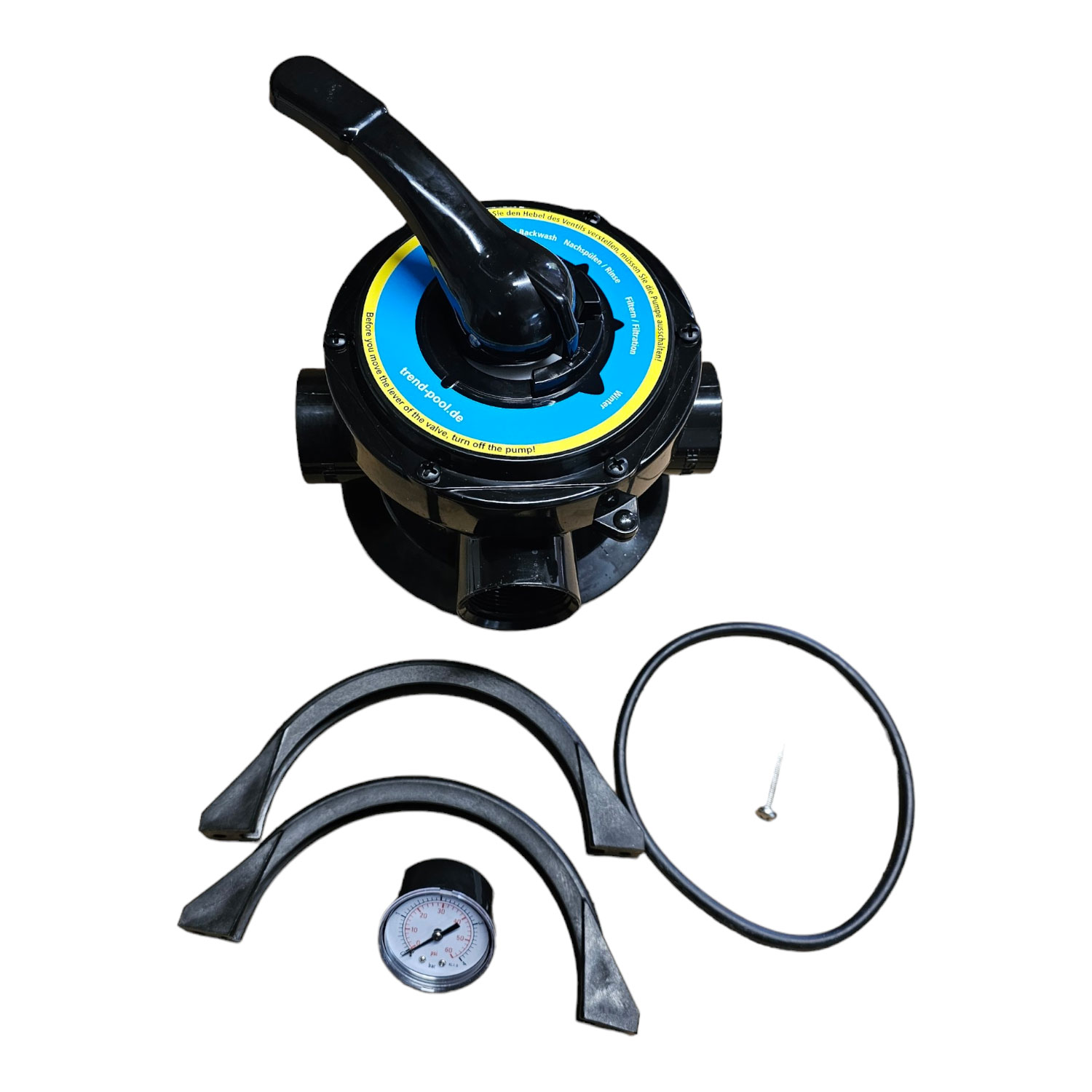Dank des Klemmrings und der mitgelieferten Dichtung ist das Ventil nicht nur einfach zu installieren, sondern auch gegen Wasserlecks gesichert. Das integrierte Manometer ermöglicht Ihnen dabei, den Druck im Auge zu behalten und die Filterleistung zu optimieren. Die Winterstellung schützt das Ventil und die Dichtungen vor Kälteschäden in der außerbetrieblichen Saison.