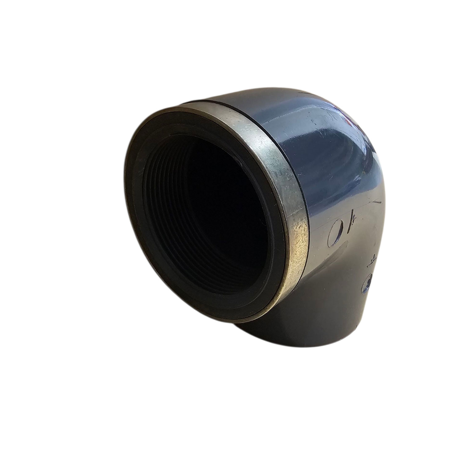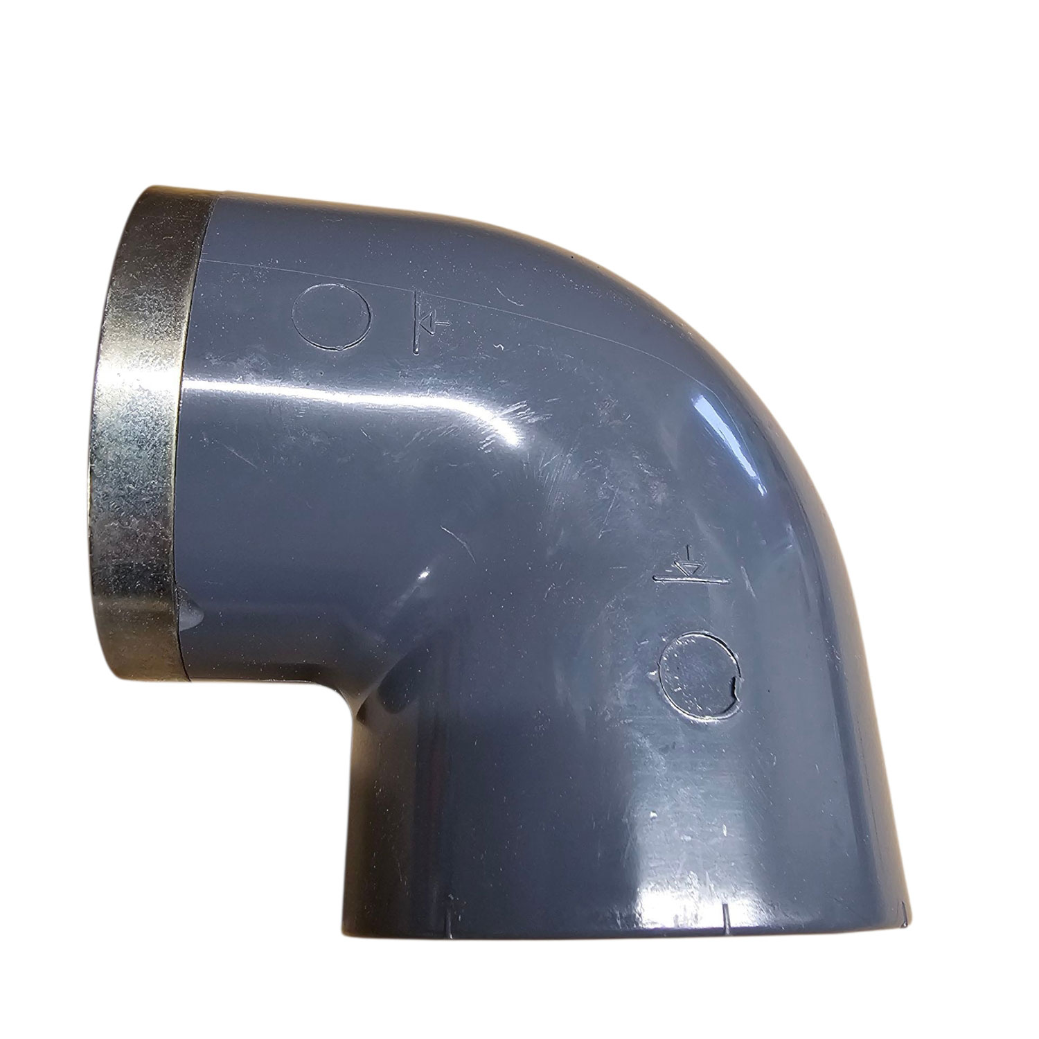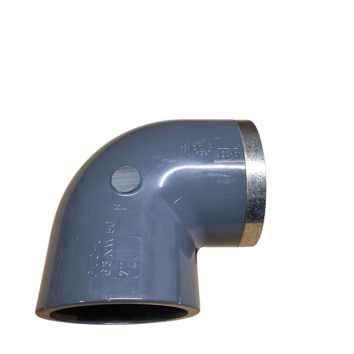IBG Winkel 90 Grad d 63mit Klebemuffe und Innengewinde VA Ring verstärkt