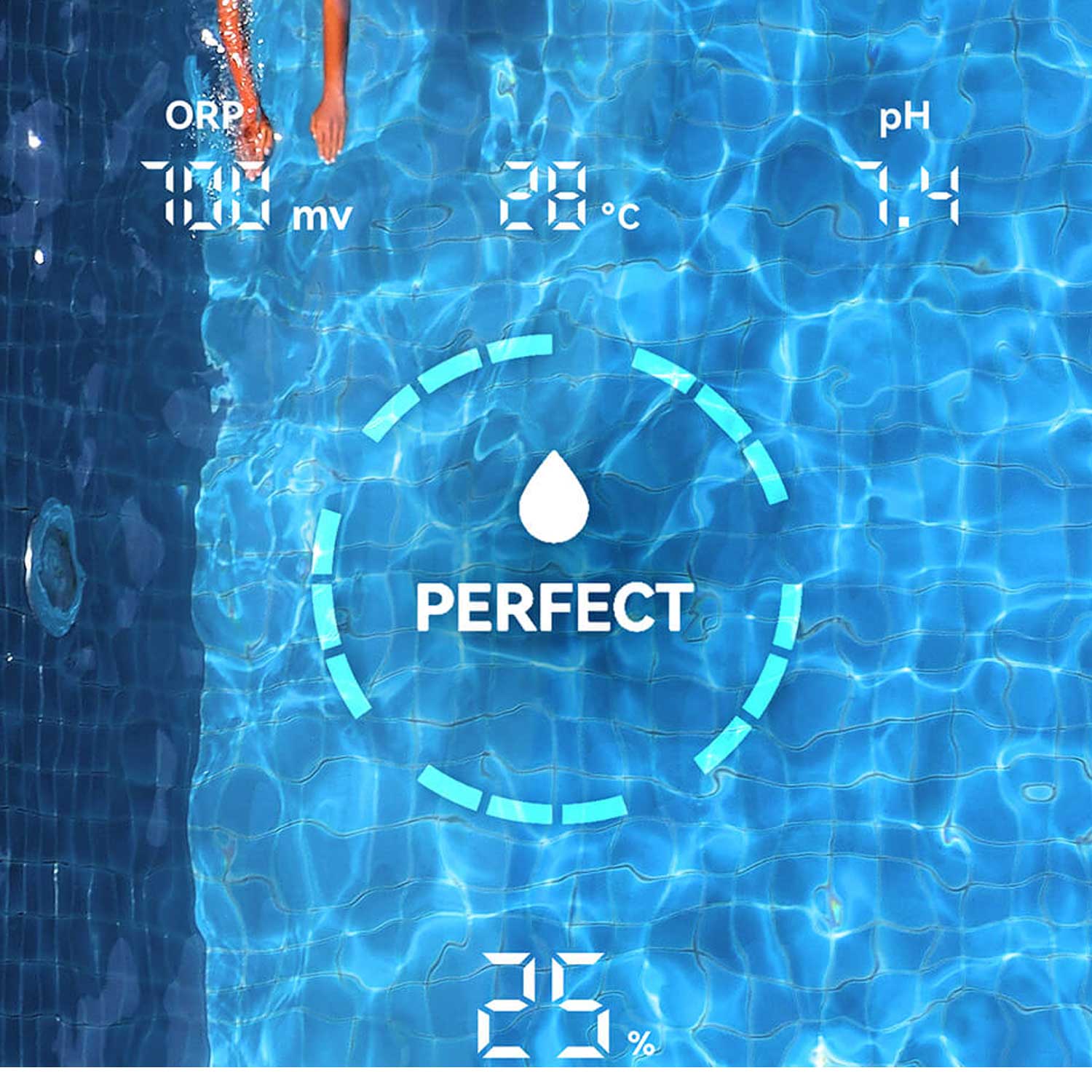 Die integrierte pH-Pumpe sorgt für eine automatische Regulierung des pH-Werts, damit das Wasser stets im idealen Bereich bleibt und Haut sowie Poolanlagen geschont werden.