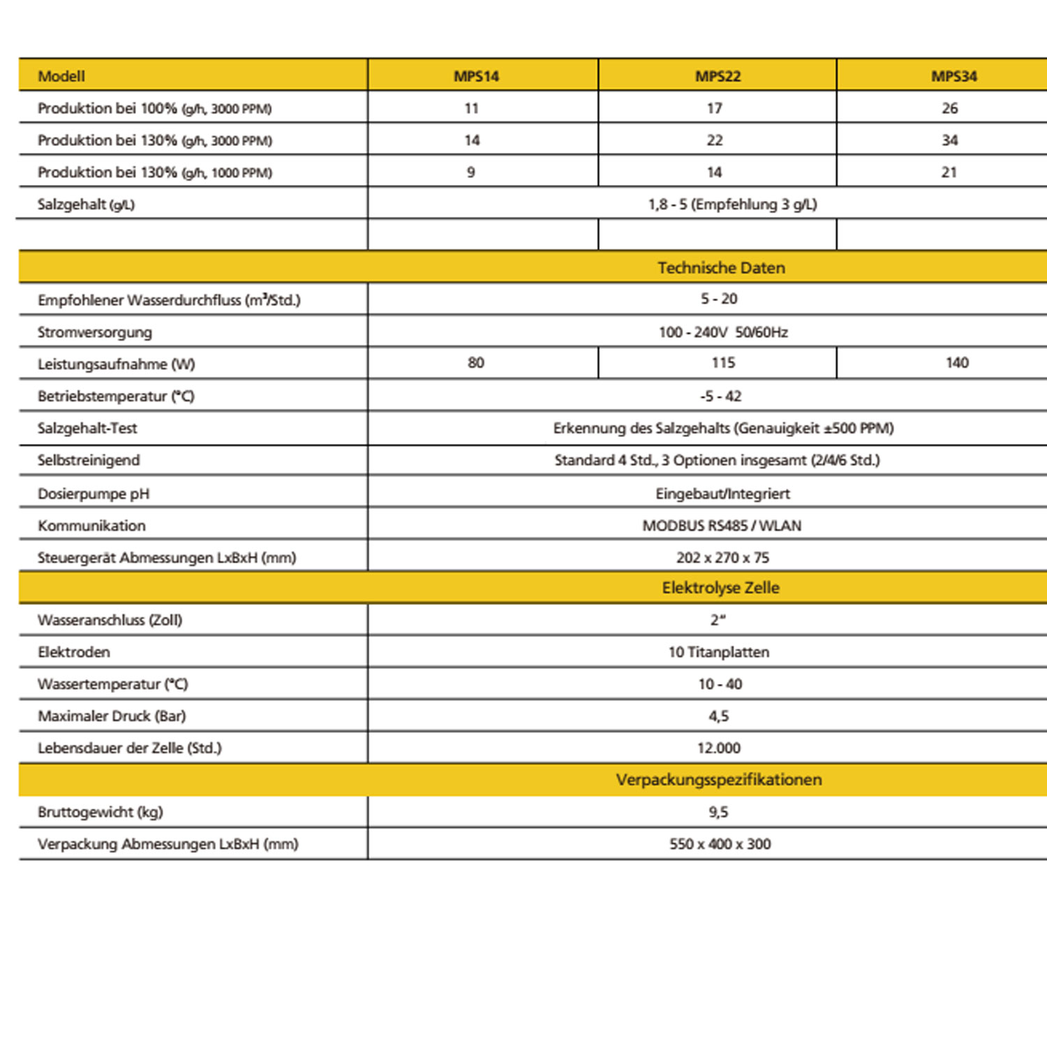 - Selbstreinigende Elektrolysezelle, bis zu 12.000 Stunden Lebensdauer