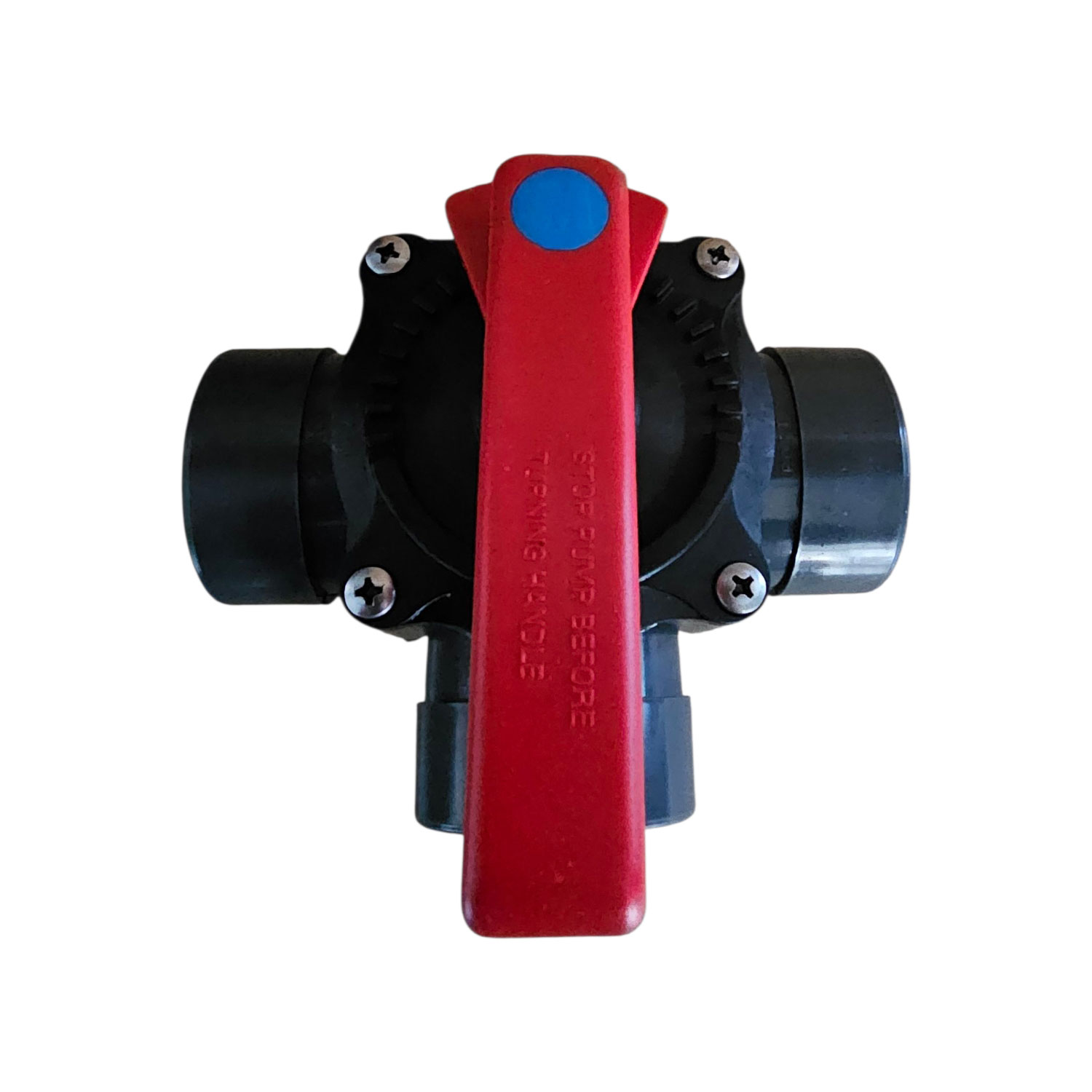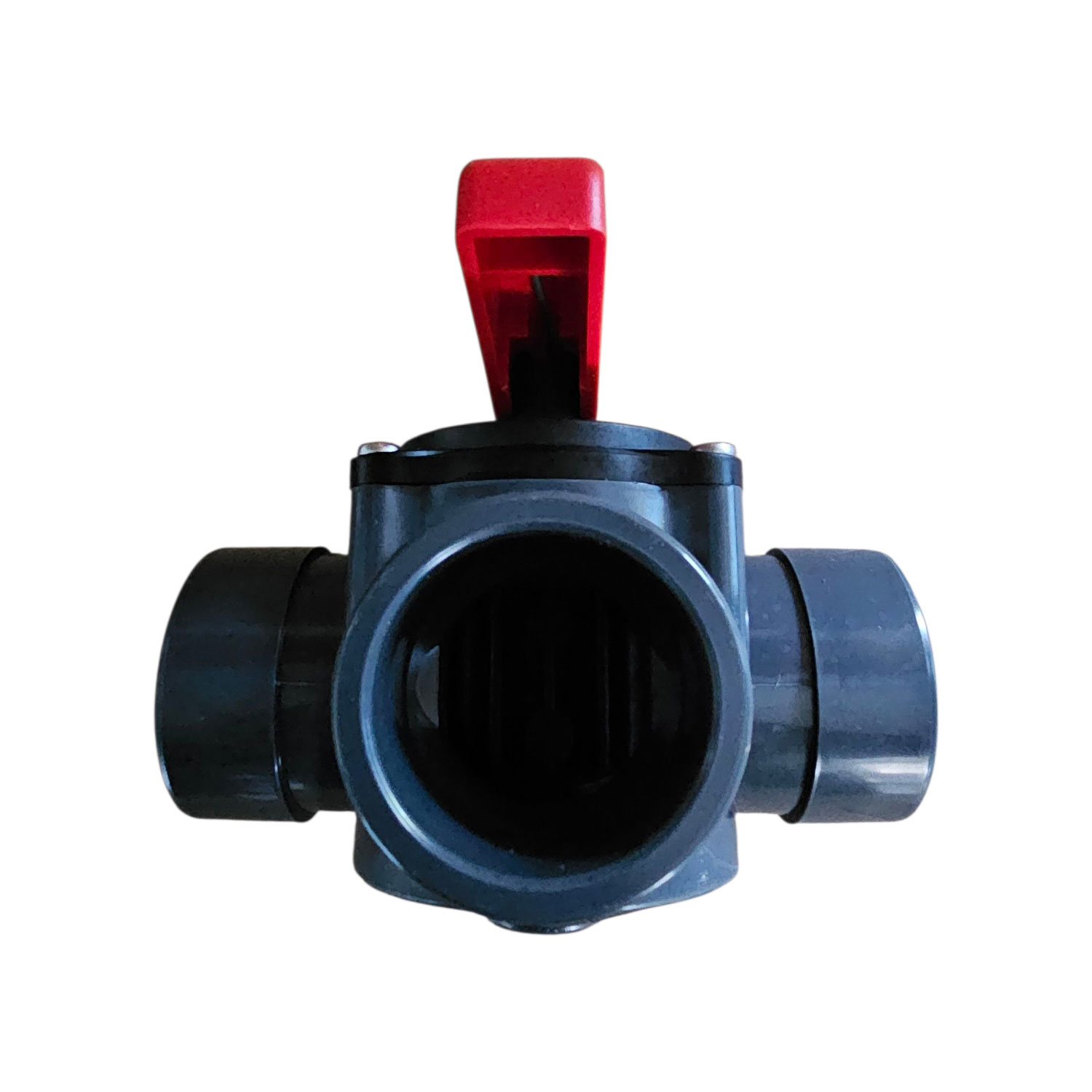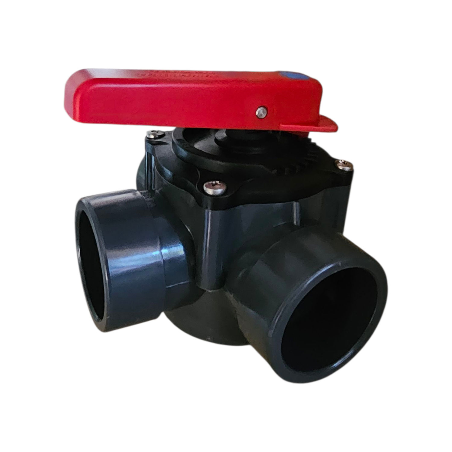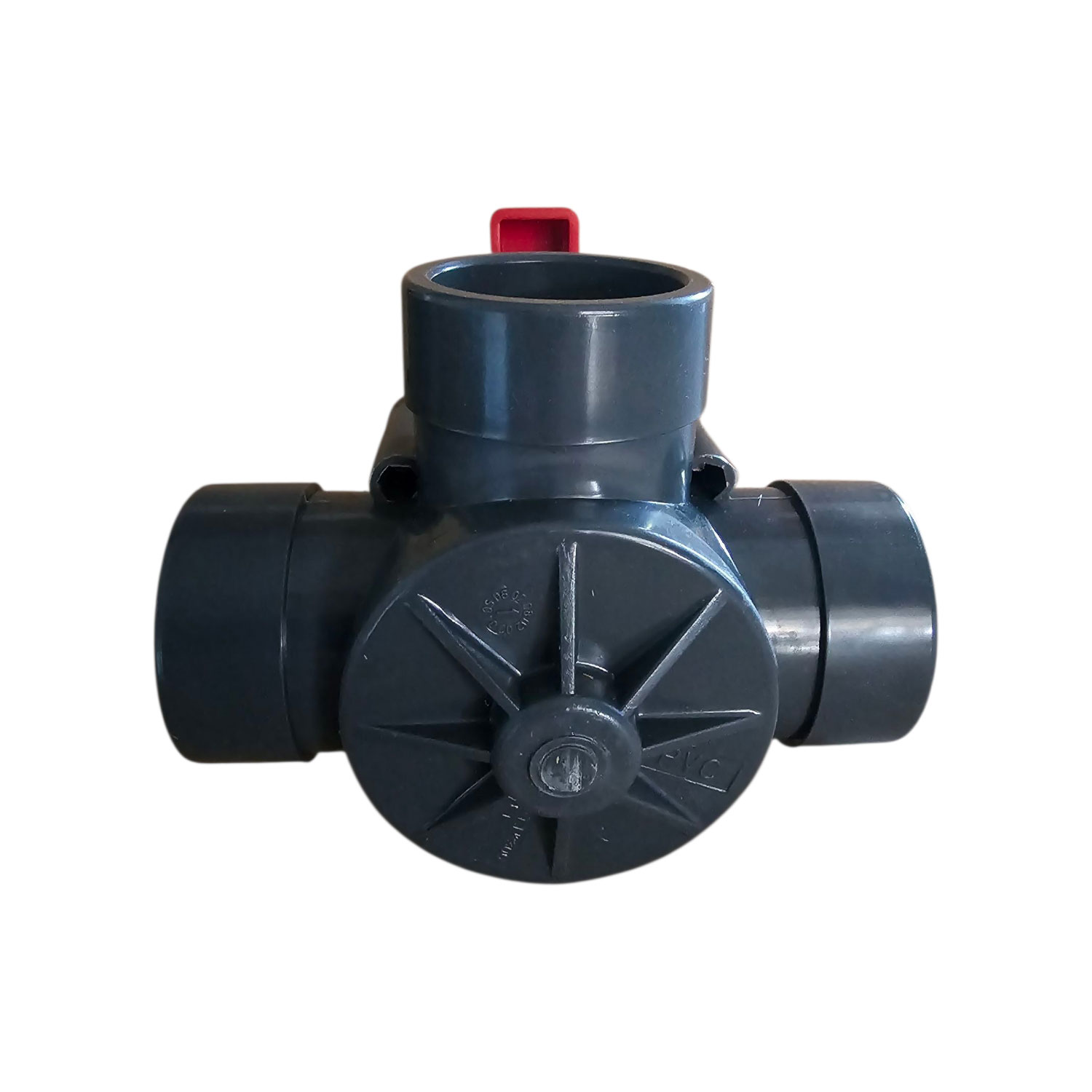 Mit seinem widerstandsfähigen PVC-U-Gehäuse und einer EPDM-Dichtung garantiert das Ventil eine exzellente Langlebigkeit sowie sichere Abdichtung auch bei längerem Einsatz. Die spezielle Konstruktion ermöglicht ein problemloses Umschalten zwischen den einzelnen Leitungswegen – der rote Handhebel bietet dabei höchsten Bedienkomfort.