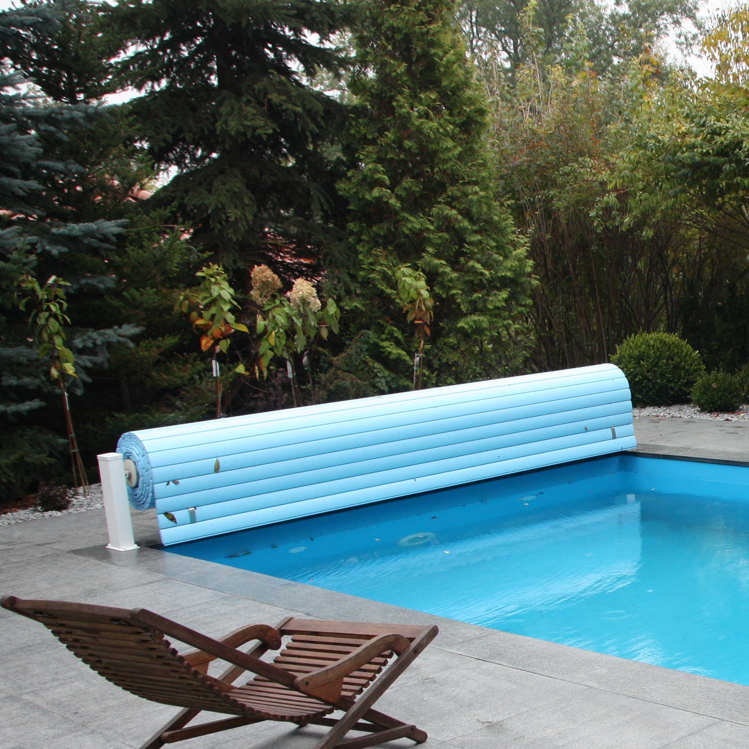 Komfortable Poolabdeckung mit stabiler Edelstahltechnik