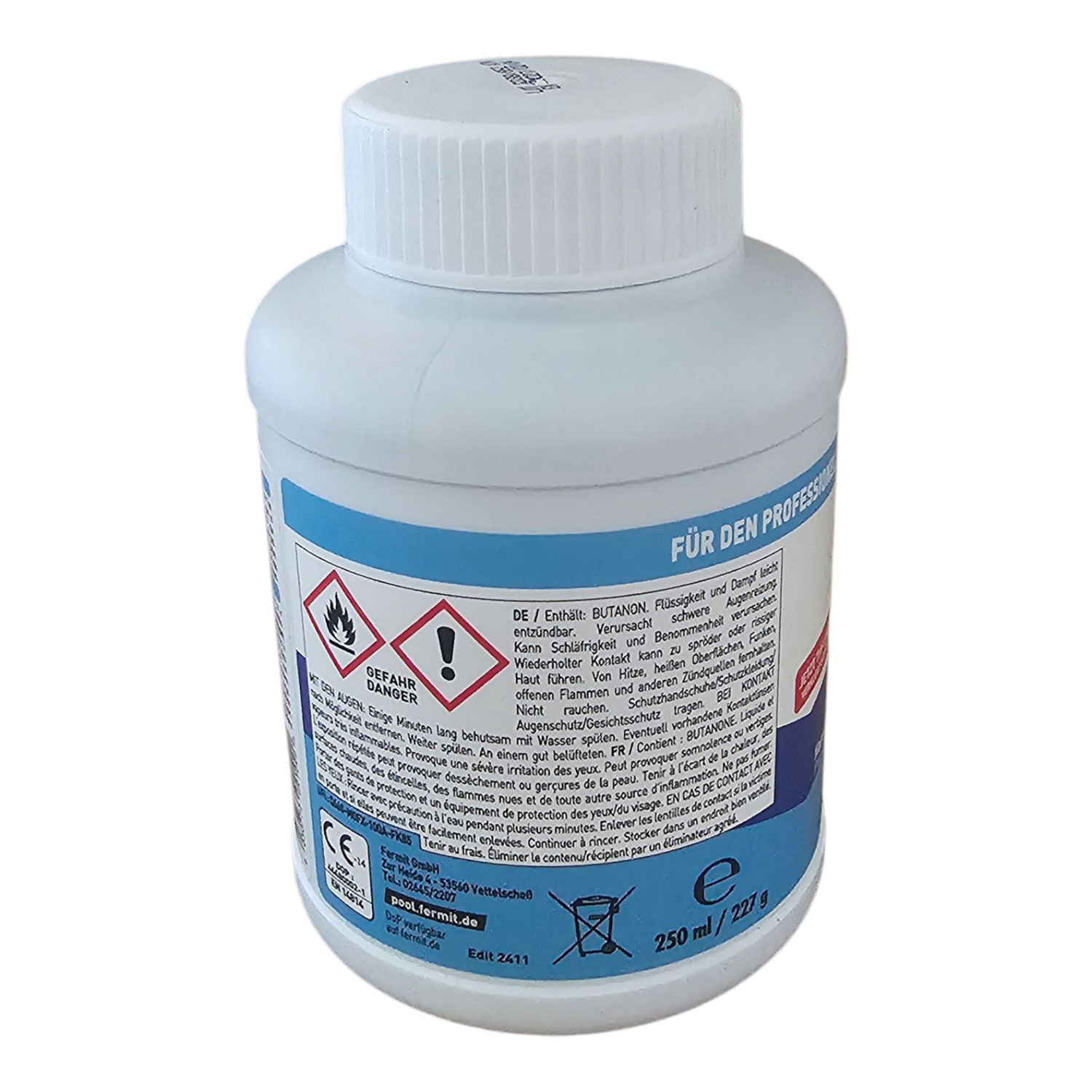 Entscheiden Sie sich für den Fermit PVC Kleber Pro und profitieren Sie von einer zuverlässigen Verbindung Ihrer Rohrleitungselemente. Machen Sie Ihre Poolprojekte und Reparaturen sicher und einfach! Bestellen Sie jetzt und überzeugen Sie sich von der Qualität!
