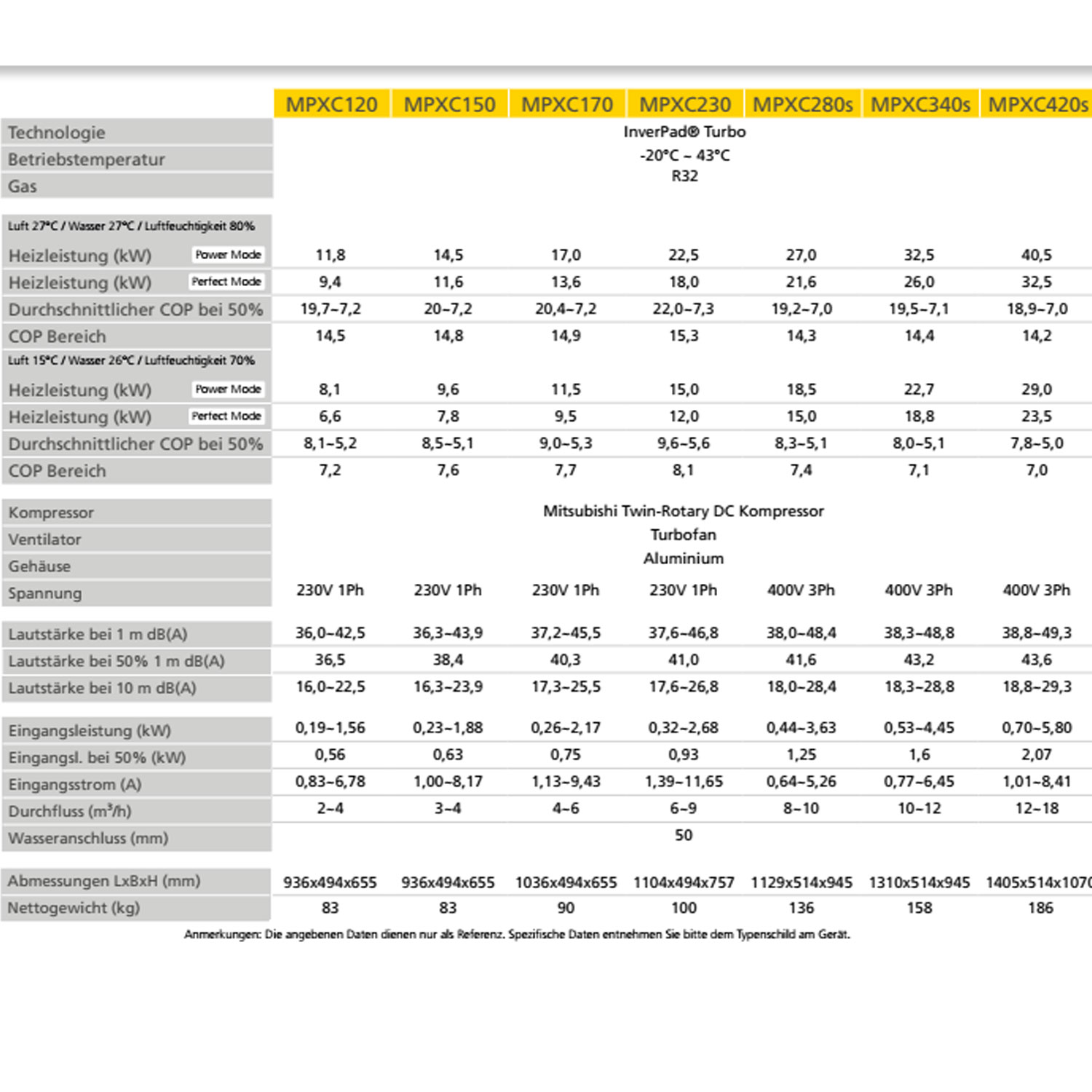 - Betriebstemperatur: Zuverlässige Heizleistung bis zu -20 °C Außentemperatur.
