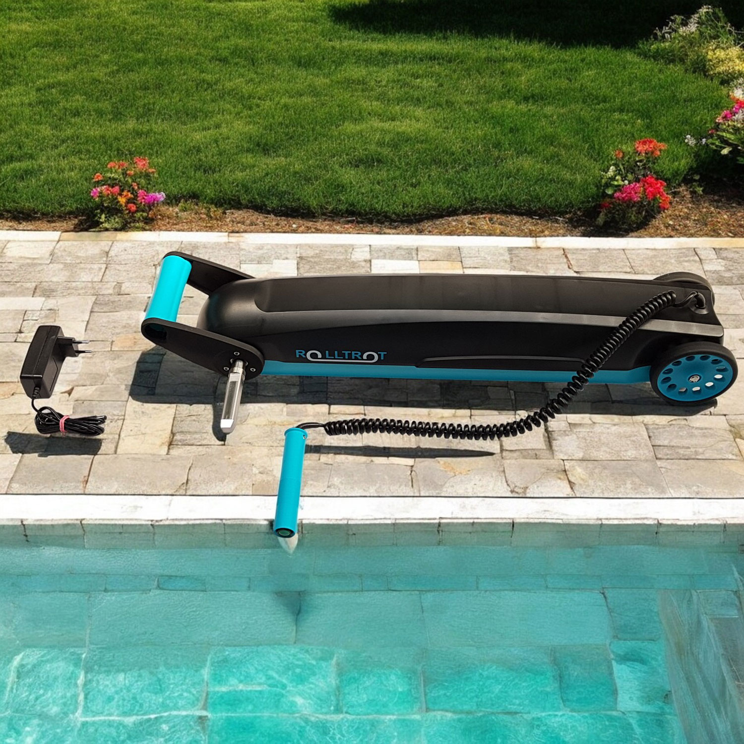 Die kabelgebundene Fernbedienung sorgt dafür, dass du den Rolltrot immer sicher im Blick hast. Während die Plane aufgerollt wird, bewegst du das Gerät synchron mit – so bleibt alles sauber in Spur und deine Abdeckung sitzt am Ende exakt da, wo sie hingehört.