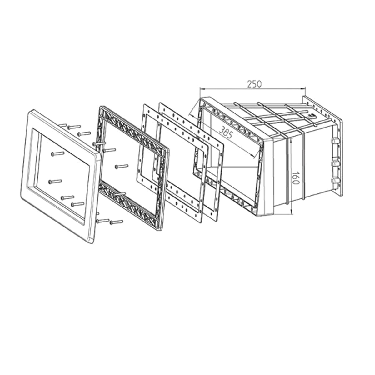 - Damit kann auch ein Ocean-Skimmer für Fertigbecken aus Polyester, Keramik, „gerade“ am schrägen Beckenflansch montiert werden