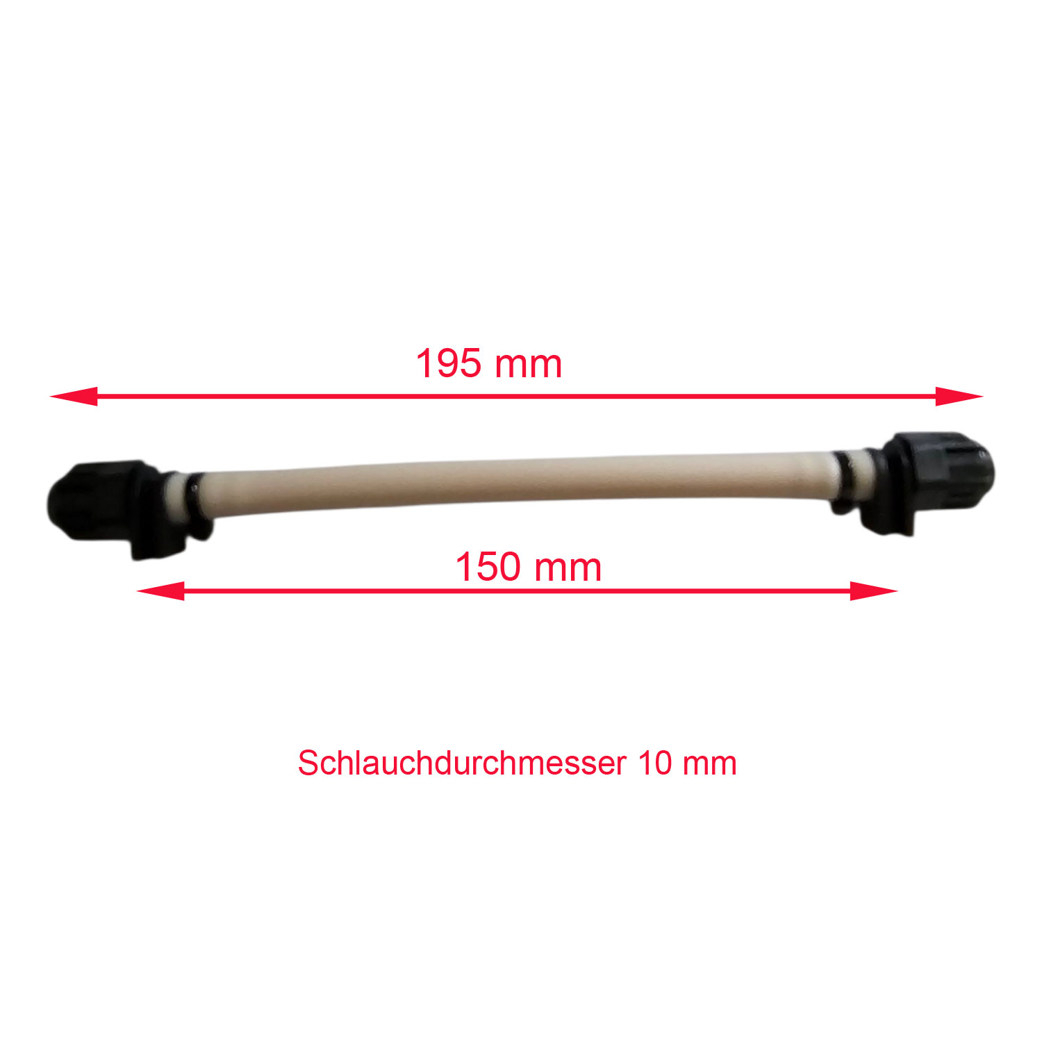 Diese Pumpenschlauchgarnitur ist speziell für Dosierpumpen vom Typ Technopool konzipiert, eignet sich jedoch auch für zahlreiche andere Dosierpumpenmodelle. Das flexible Material und die präzisen Anschlüsse ermöglichen eine einfache Montage und sorgen für eine dichte Verbindung, die Leckagen verhindert. Die schlanke Bauweise und die passende Länge von 195 mm machen die Garnitur besonders handlich und platzsparend.