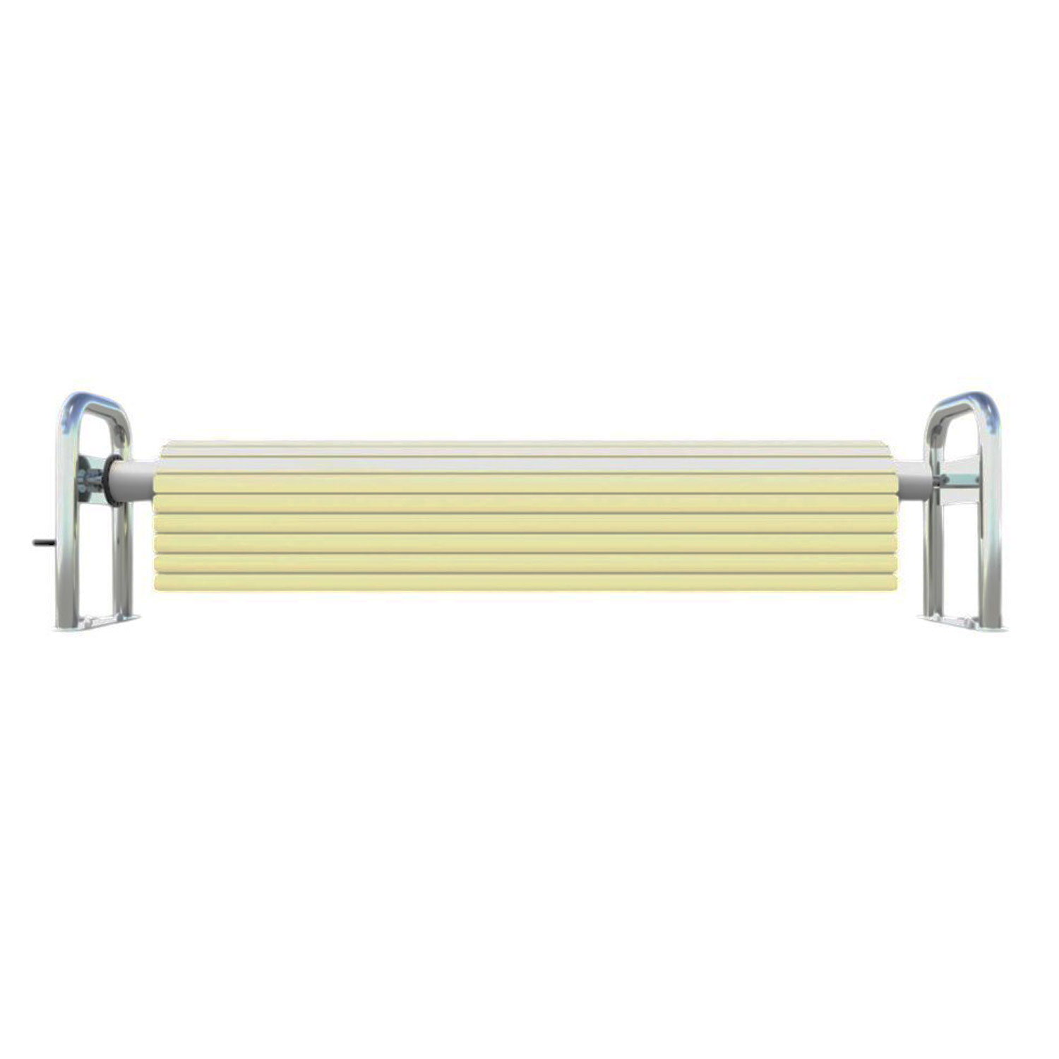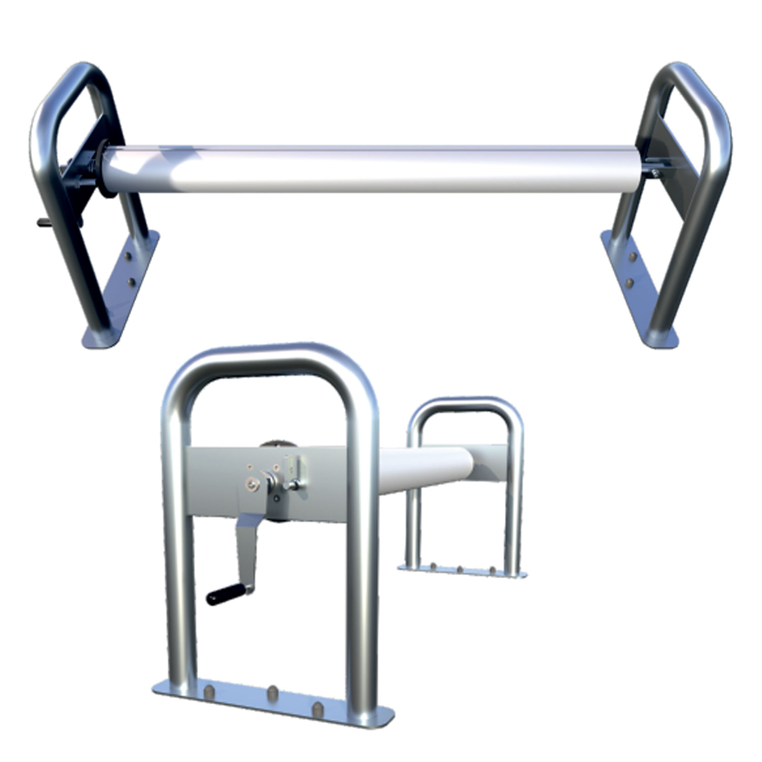 Die Oberflur Rollladenabdeckung wird von zwei robusten und stabilen Edelstahlsäulen getragen. Die Abdeckung wird mit Hilfe einer Kurbel auf- und abgewickelt. Die Bedienung erfolgt dabei absolut manuell.